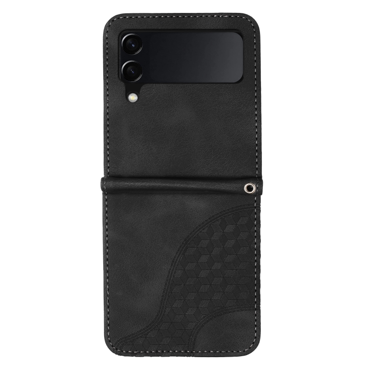 Funda para Samsung Galaxy Z Flip4 5G Yx0060 Cuero con Relieve y Cabeza de Elefante con Cordón (Negro)