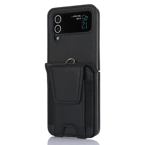 Estuche Plegable Samsung Galaxy Z Flip4 con Ranuras para Tarjetas y Cordón Largo (Negro)