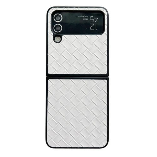 Funda Plegable Samsung Galaxy Z Flip4 de PU con Textura Tejida (Blanco)