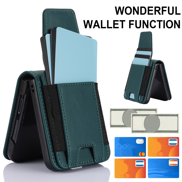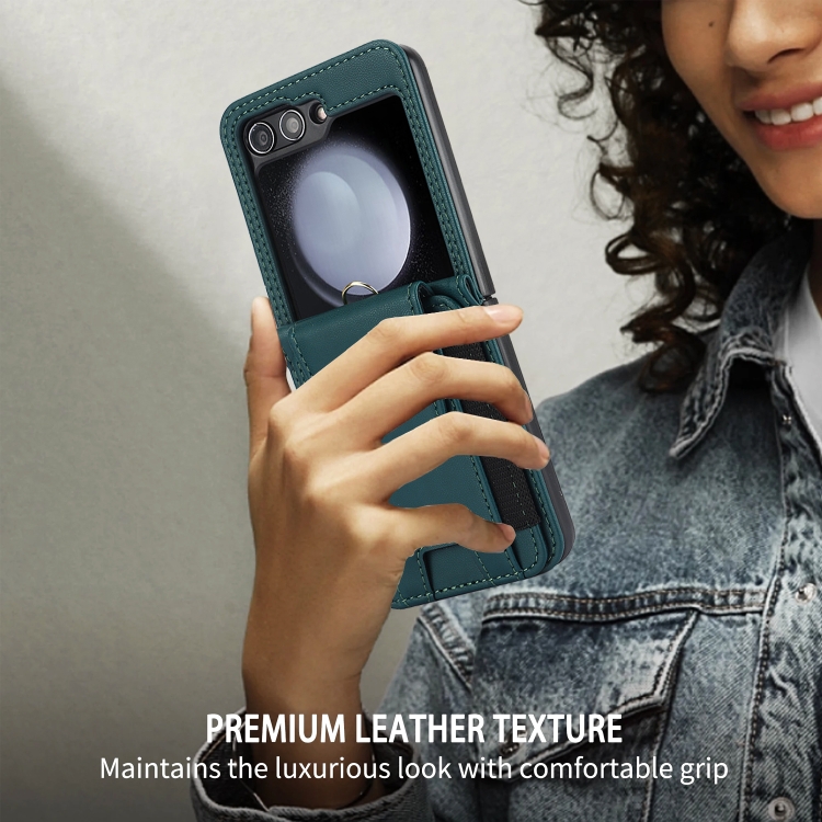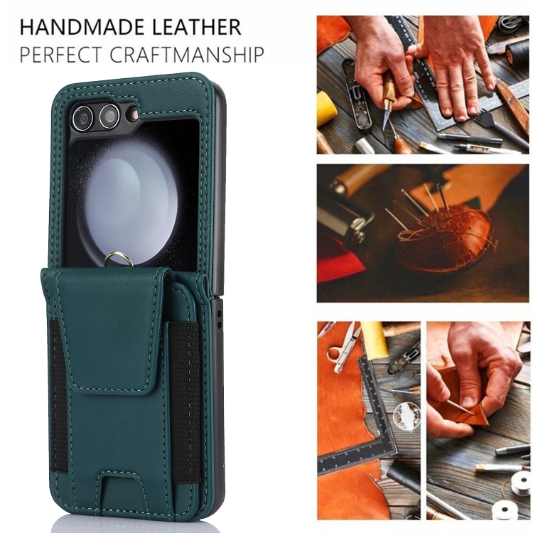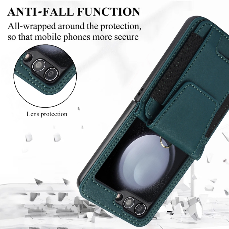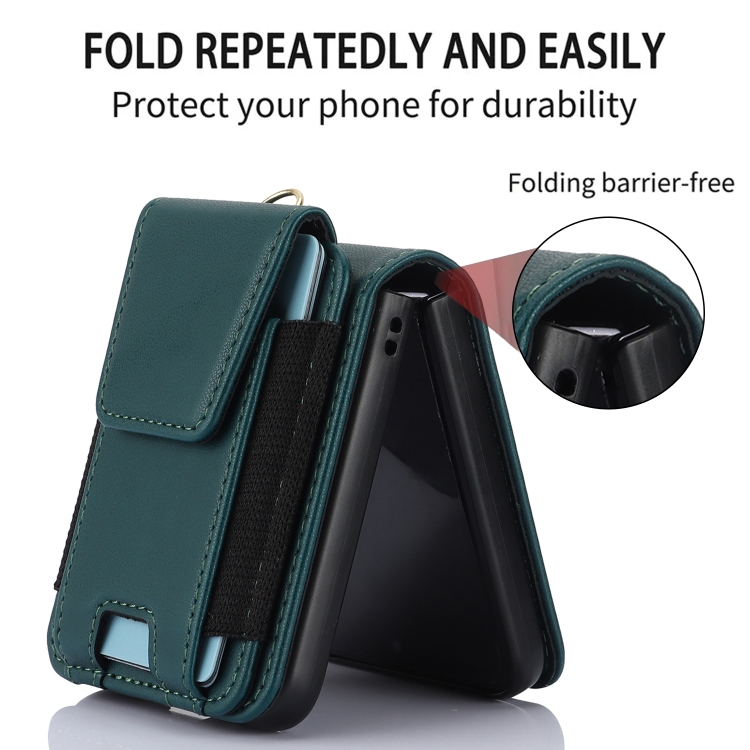 Funda para Teléfono Plegable Samsung Galaxy Z Flip5 con Ranuras para Tarjetas y Cordón Largo (Verde)
