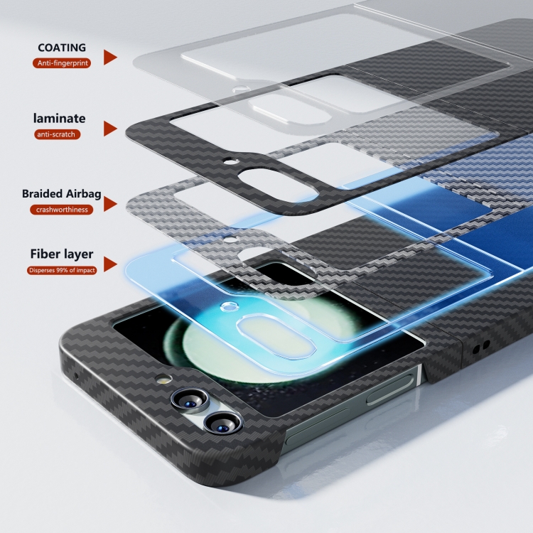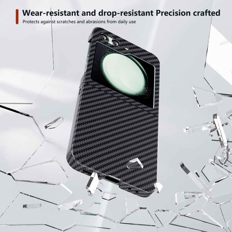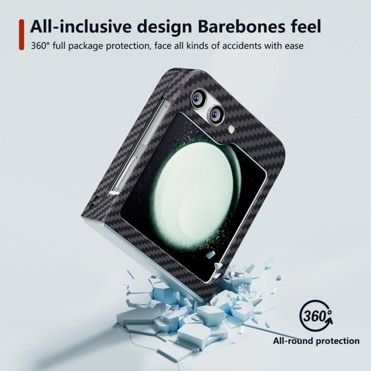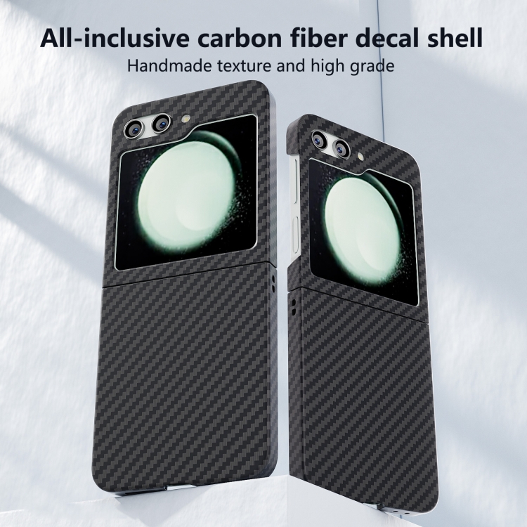 Funda Protectora Samsung Galaxy Z Flip5 Textura Fibra de Carbono con Calcomanía (Negro)