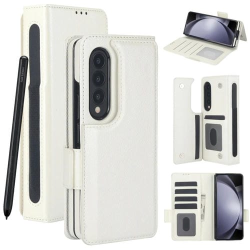Estuche para Teléfono Samsung Galaxy Z Fold3 Cuero Plegable Multifuncional Ranura para Bolígrafo (Blanco)