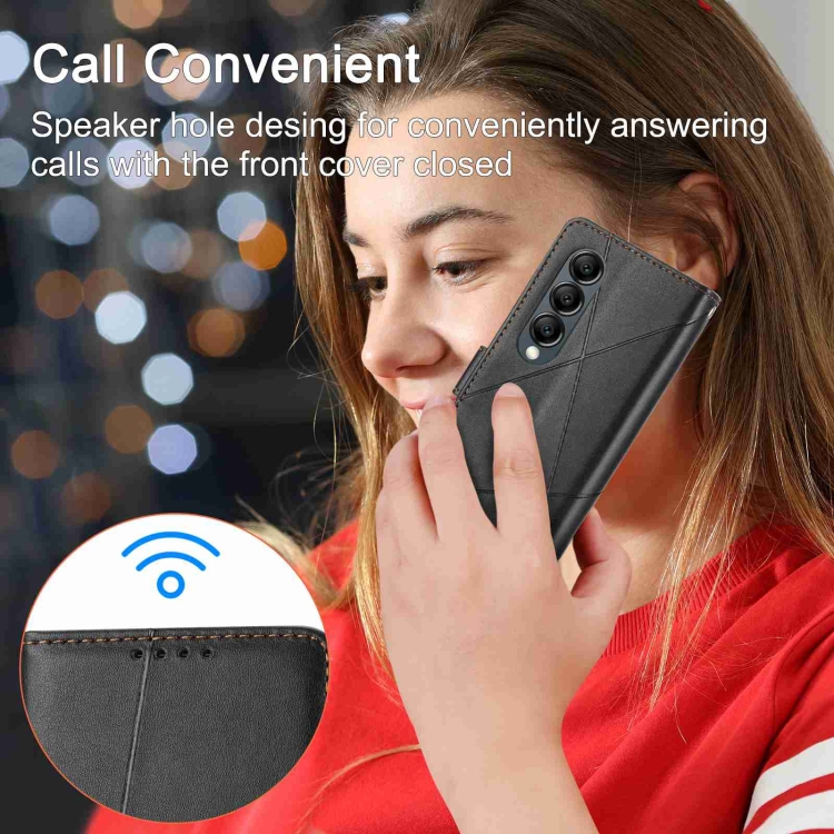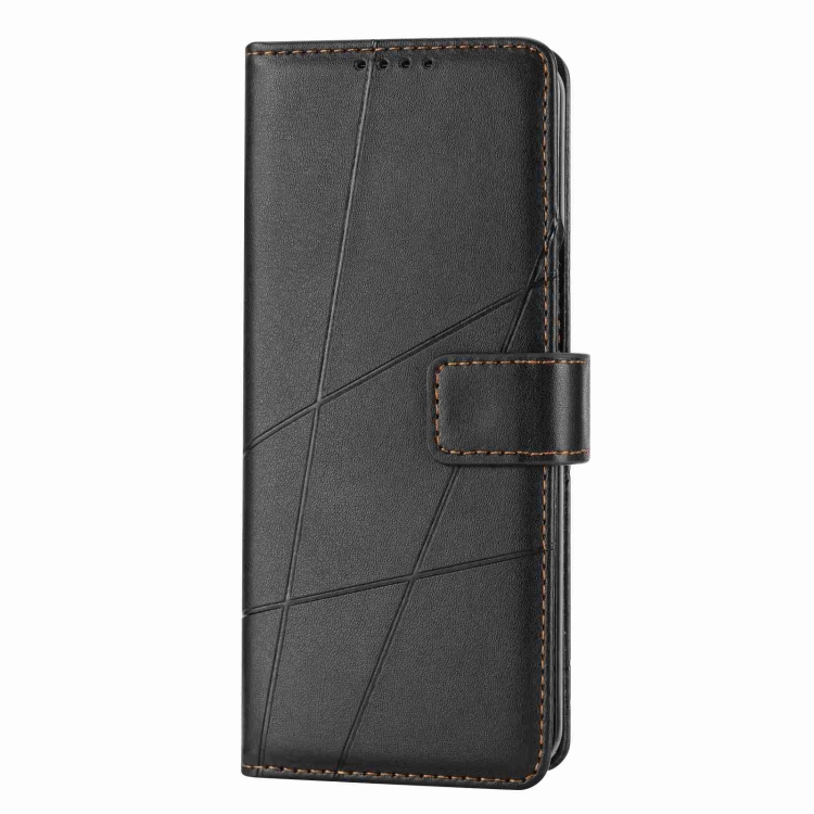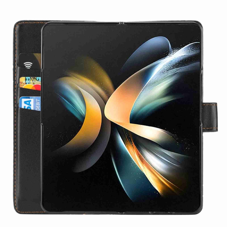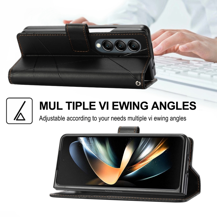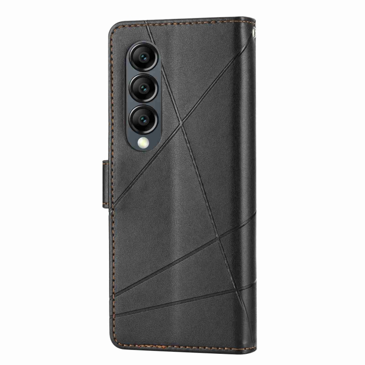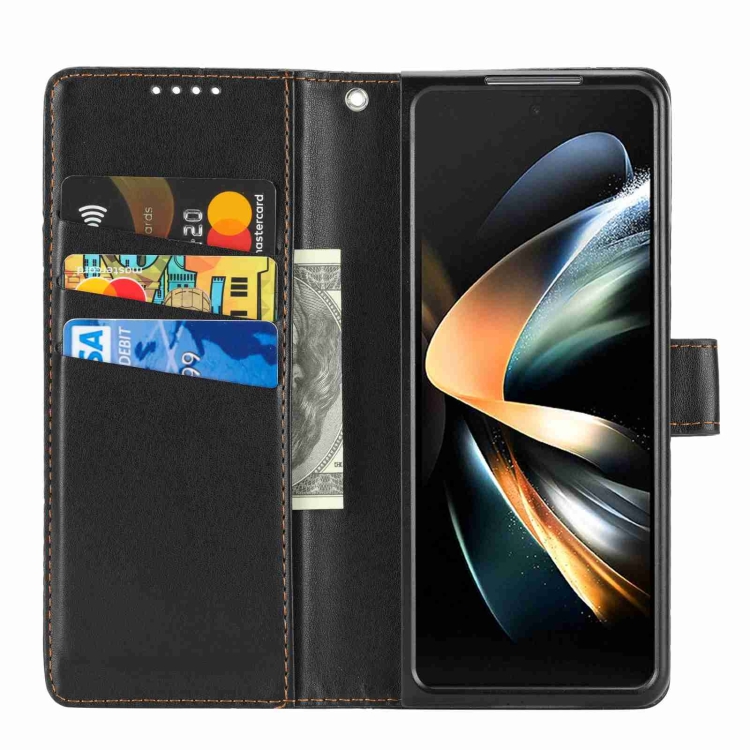 Funda para Teléfono Samsung Galaxy Z Fold3 PU Cuero Genuino Línea En Relieve (Negro)