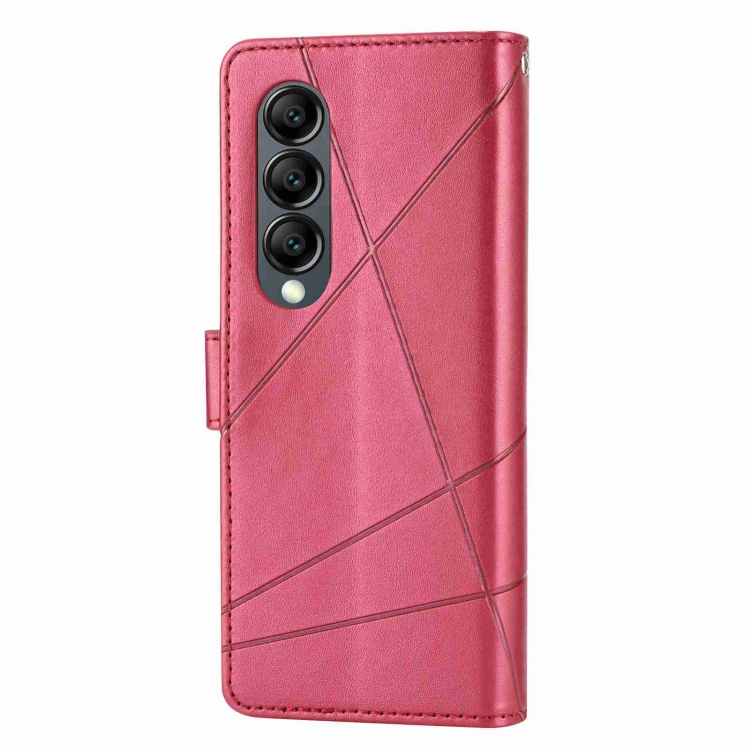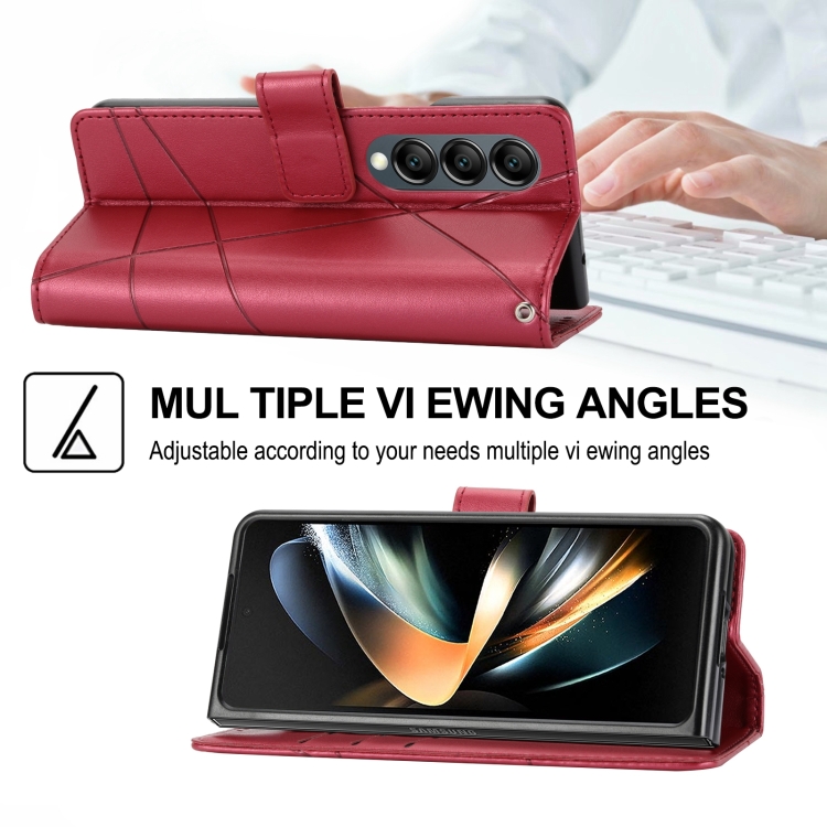 Funda para Teléfono Samsung Galaxy Z Fold3 Pu con Línea En Relieve Textura de Cuero Genuino (Rojo)