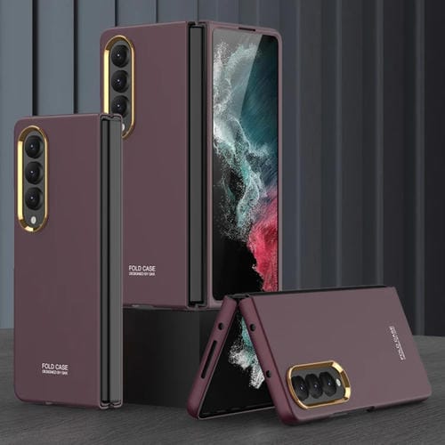 Estuche para teléfono Samsung Galaxy Z Fold4 Gkk con marco de lente de galvanoplastia ultrafino (Marrón)