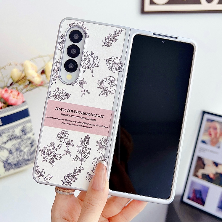 Estuche para teléfono Samsung Galaxy Z Fold5 5G con PC Pintura Nacarada (Flor de Bosquejo)
