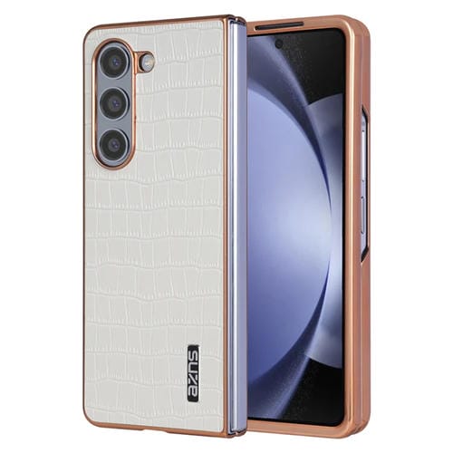 Estuche para Teléfono Samsung Galaxy Z Fold5 Azns Textura de Cocodrilo Marco Galvanizado (Blanco)