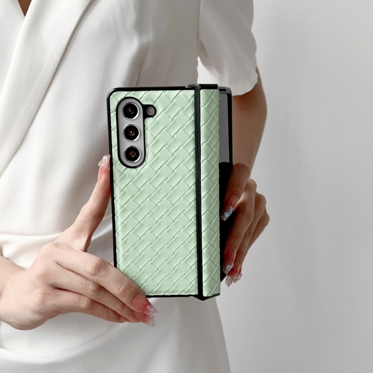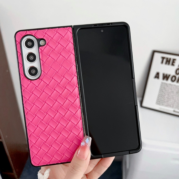 Funda plegable Samsung Galaxy Z Fold5 para teléfono de PU con textura tejida (Rojo Rosa)