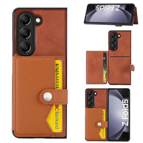 Funda para Teléfono Samsung Galaxy Z Fold5 Litchi Pattern con Tarjetero de Un Solo Botón (Marrón)