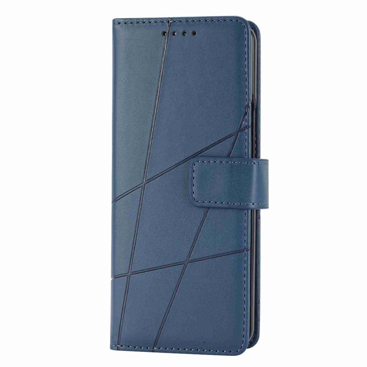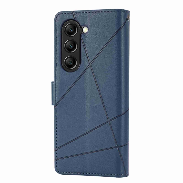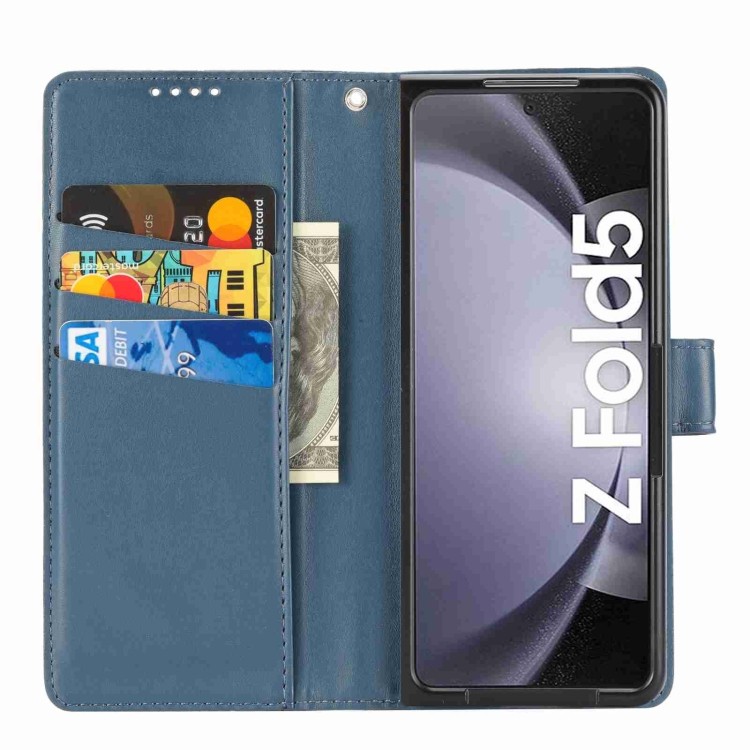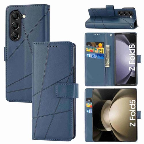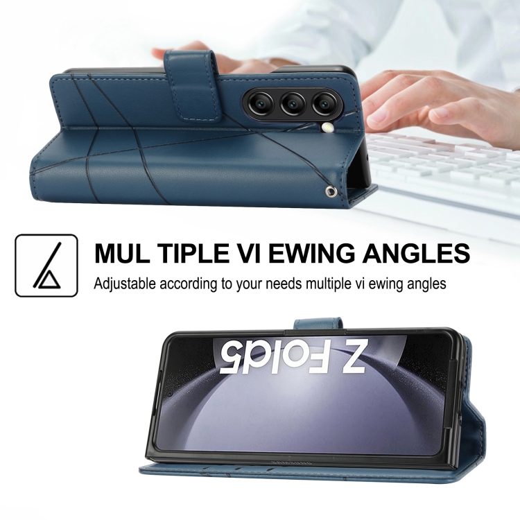 Funda para Teléfono Samsung Galaxy Z Fold5 con Línea en Relieve y Textura de Cuero Genuino (Azul)