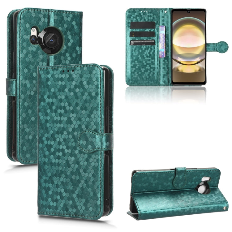 Funda para Sharp Aquos R8 con Textura Honeycomb de Cuero (Verde)