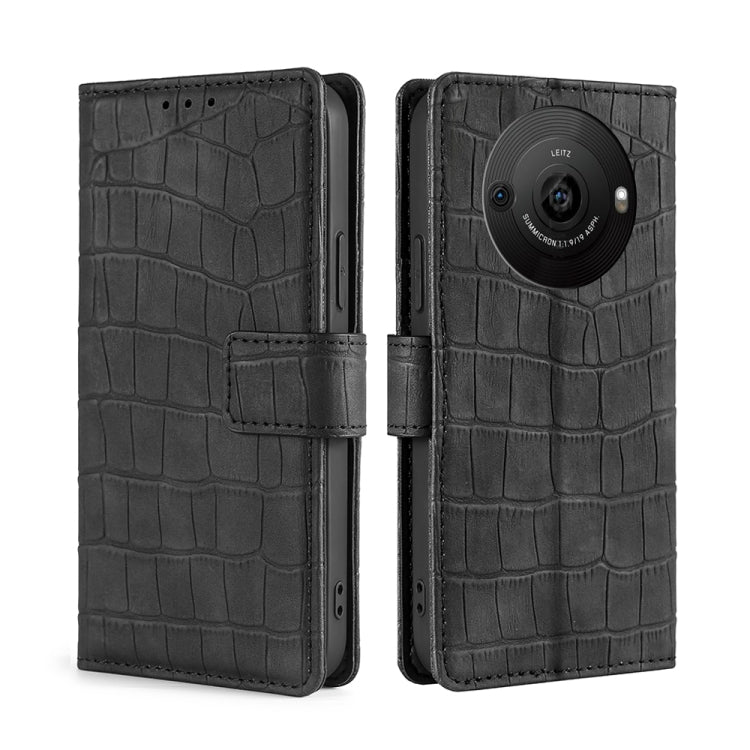 Funda de Cuero para Sharp Aquos R8 Pro Sh-51 Skin Feel Cocodrilo con Cierre Magnético (Negro)