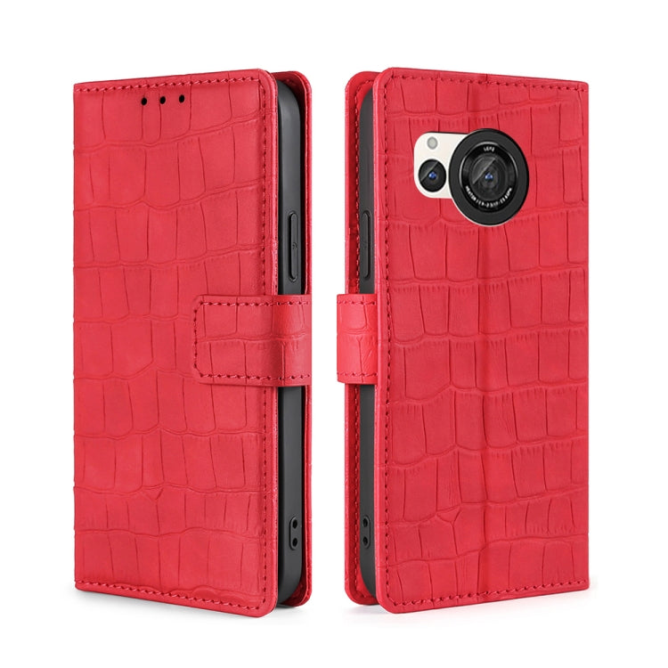 Funda de Cuero para Sharp Aquos R8 Sh-52D Skin Feel Cocodrilo con Cierre Magnético (Rojo)