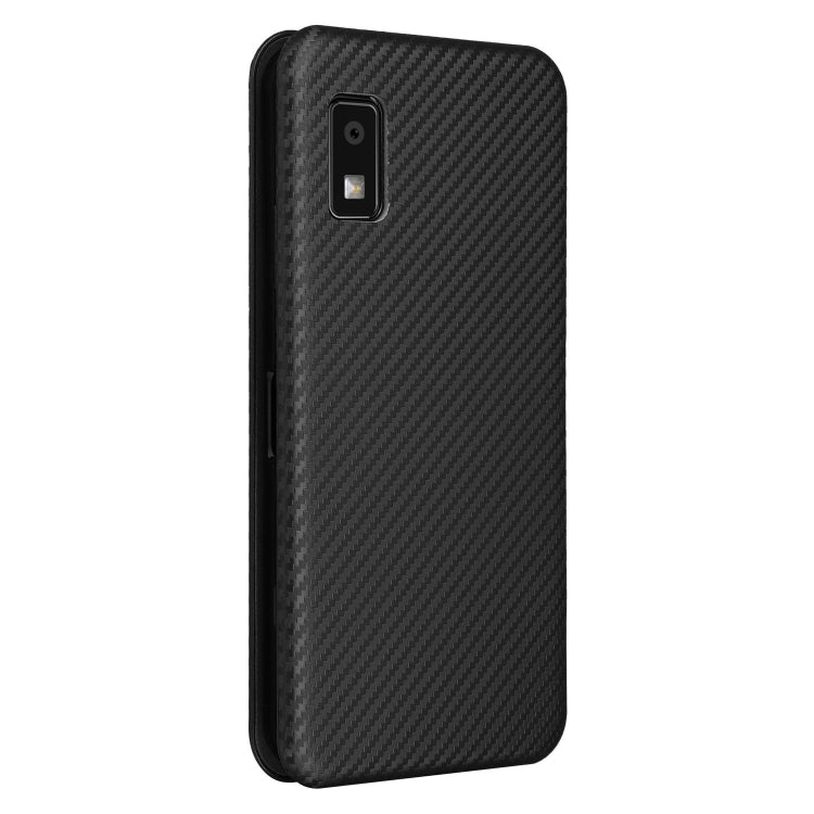 Funda de Cuero para Sharp Aquos Wish 3 con Textura de Fibra de Carbono (Negro)