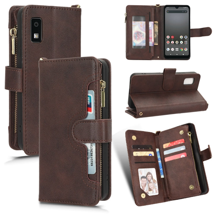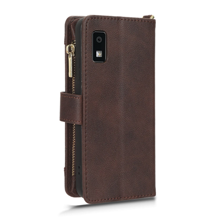 Funda de Cuero para Sharp Aquos Wish 3 con Cremallera y Textura Litchi (Marrón)