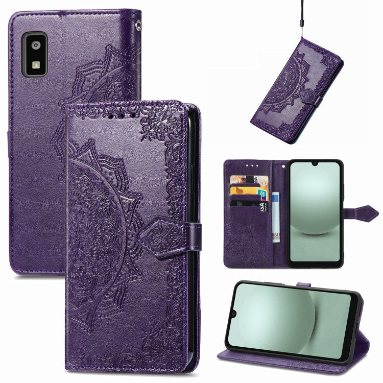 Funda de Cuero En Relieve Mandala Flower para Sharp Aquos Wish 3 (Púrpura)