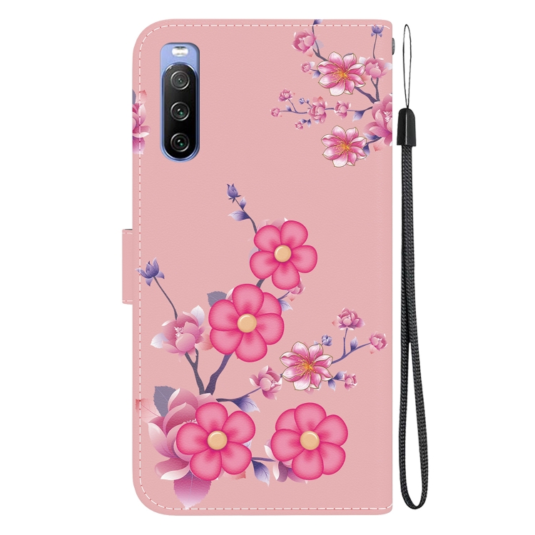 Estuche para Sony Xperia 10 III de Cuero con Dibujo y Textura de Cristal (Flores de Cerezo)