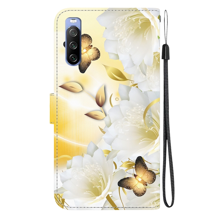 Funda de Cuero Sony Xperia 10 III con Dibujo Coloreado y Textura de Cristal (Epiphyllum Mariposa Dorada)