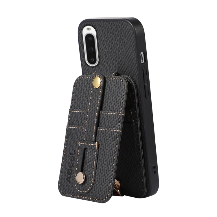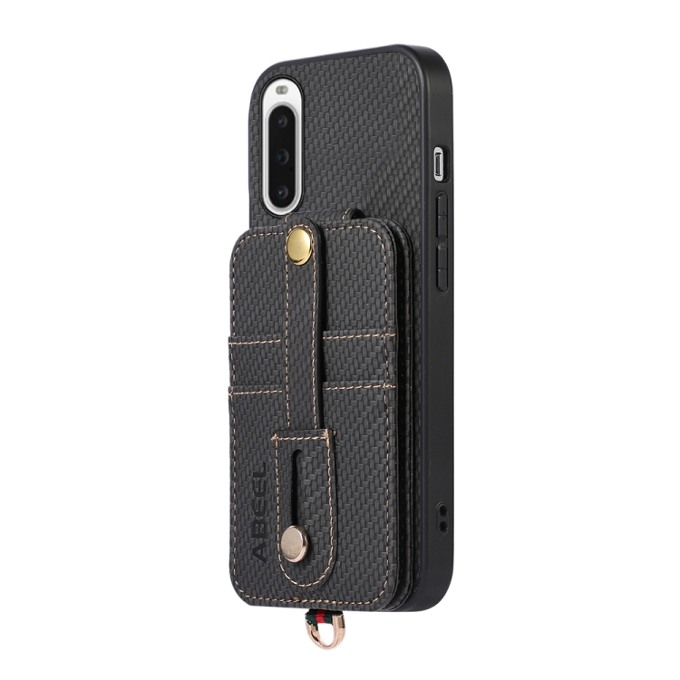 Funda para Sony Xperia 10 V Abeel con Tarjetero RFID de Fibra de Carbono (Negro)