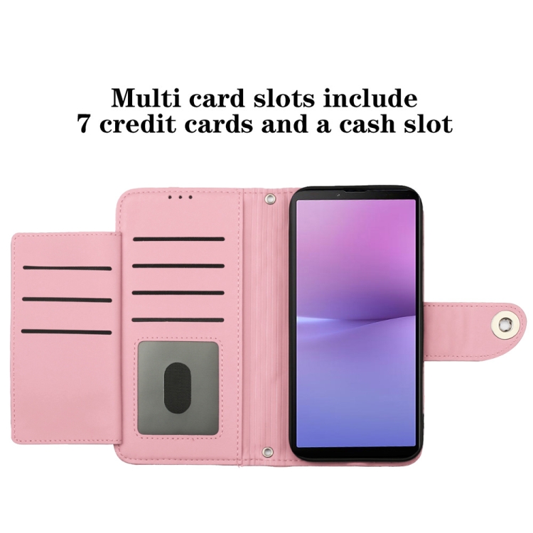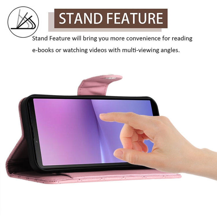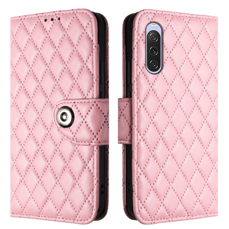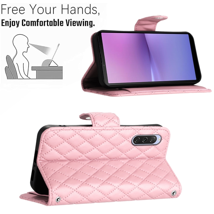 Funda de Cuero para Sony Xperia 10 V con Tapa, Textura Rómbica y Cordón (Rosa)
