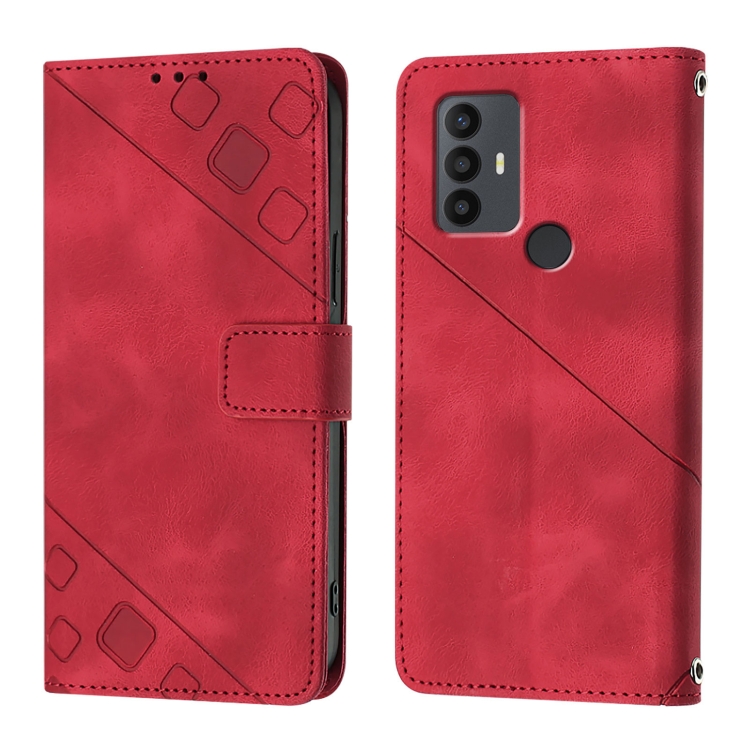 Funda de Cuero para TCL 30 Se Skin Feel en Relieve (Rojo)