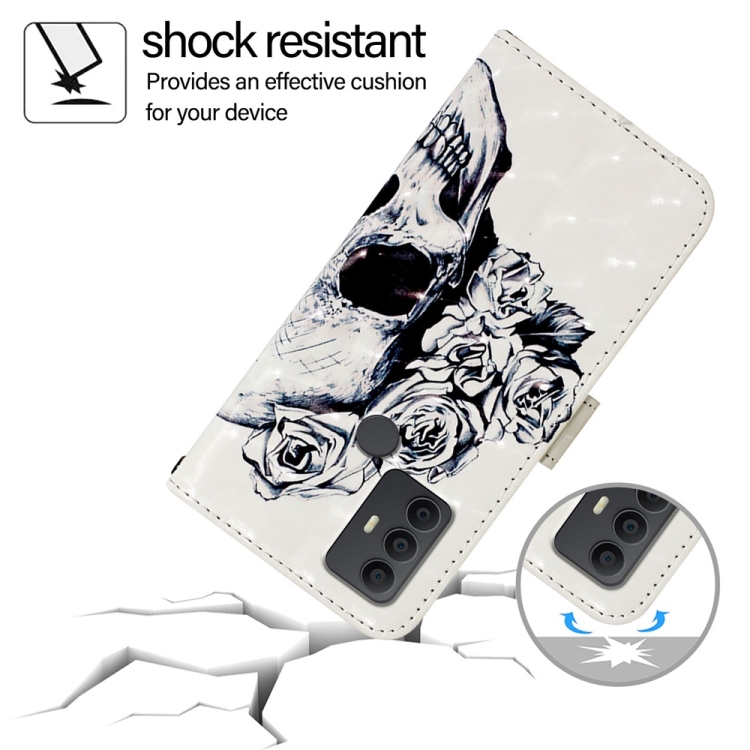 Funda de Cuero para TCL 306 con Tapa Horizontal y Pintura 3D Calavera