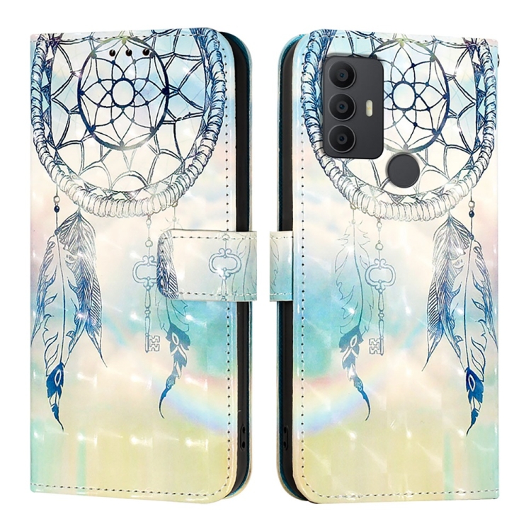 Funda de Cuero para TCL 306 con Tapa Horizontal y Pintura 3D (Campanas de Viento de Ensueño)