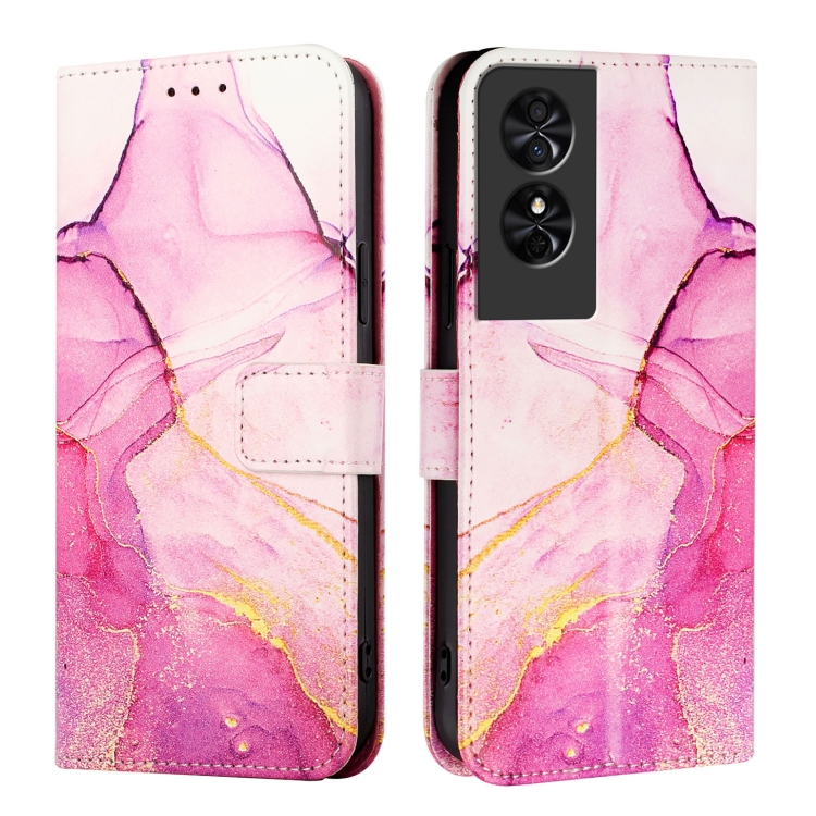 Funda de cuero con tapa para TCL 50 SE PT003 con patrón de mármol (Rosa, Morado y Dorado)