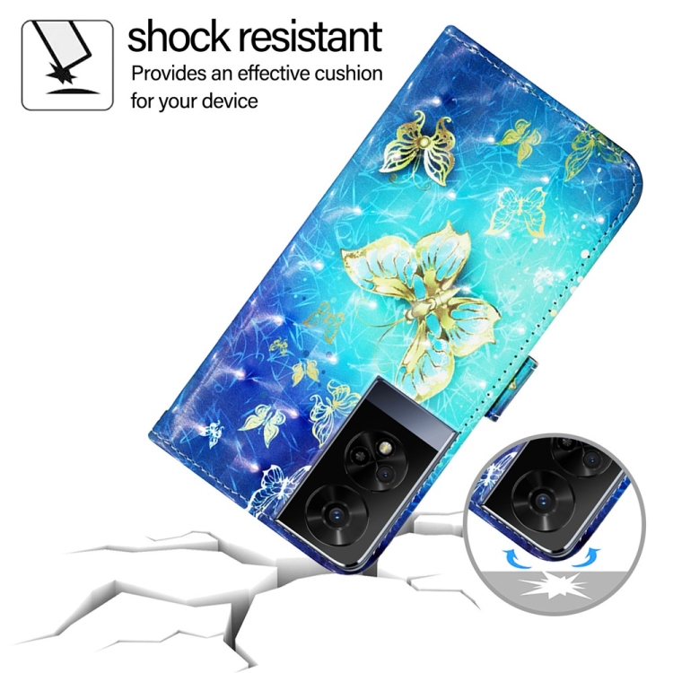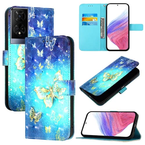 Funda de Cuero para TCL 50 Xe 5G con Tapa Horizontal y Pintura 3D (Mariposa Dorada)