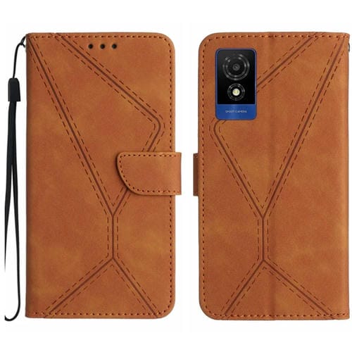 Funda de Cuero para TCL 502 con Costuras en Relieve (Marrón)
