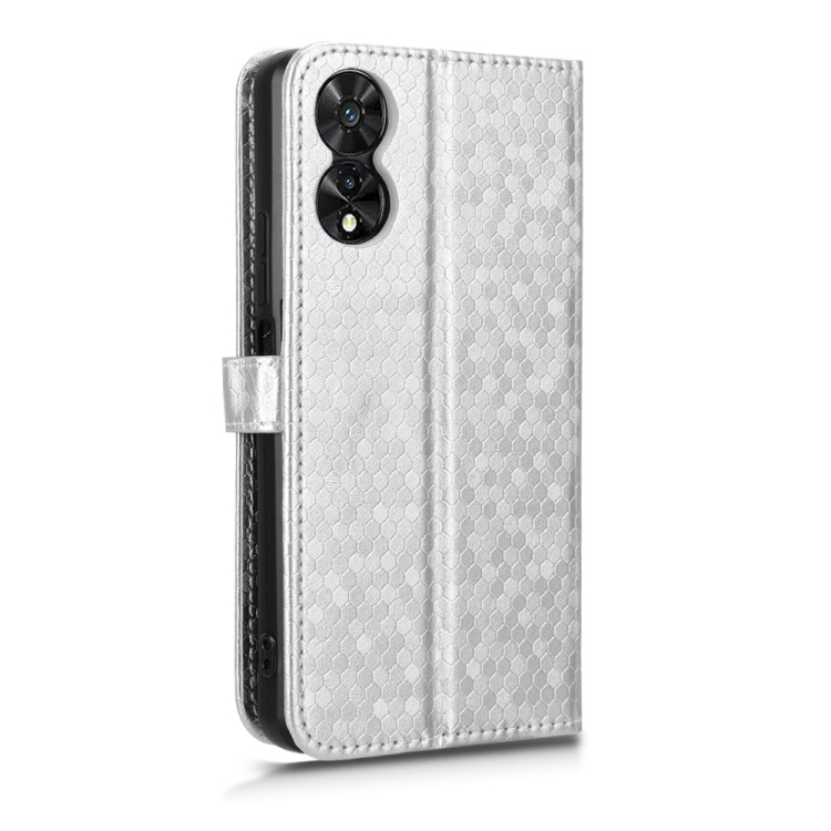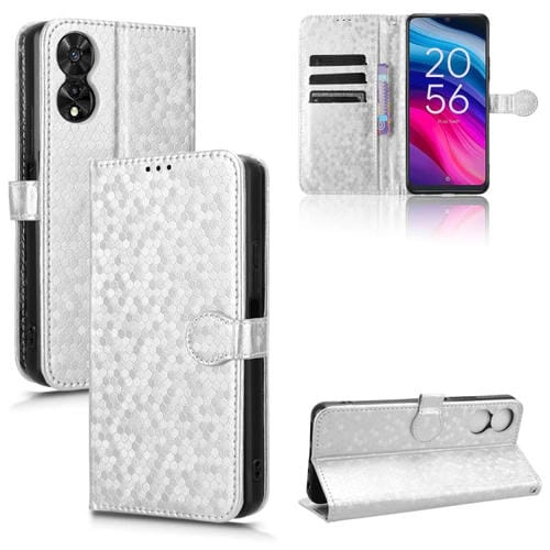 Funda de Cuero para Teléfono TCL 505 Honeycomb Dot Texture (Plata)