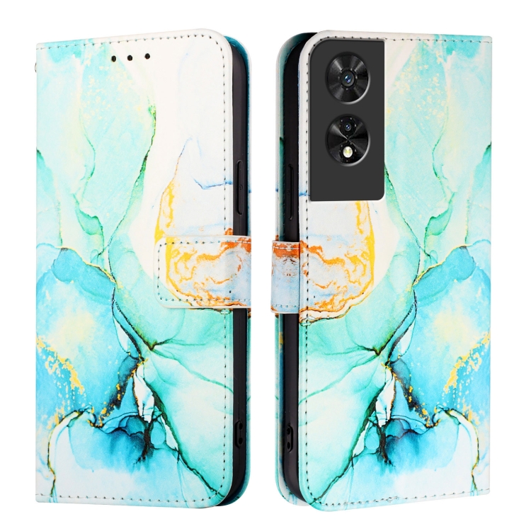 Funda de Cuero con Tapa para TCL 505 Pt003 con Patrón de Mármol (Verde)