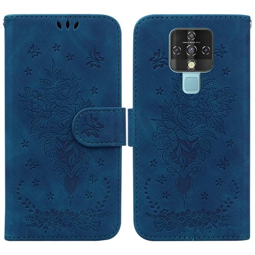 Funda de Cuero para Tecno Camon 16 con Relieve de Mariposa (Azul)