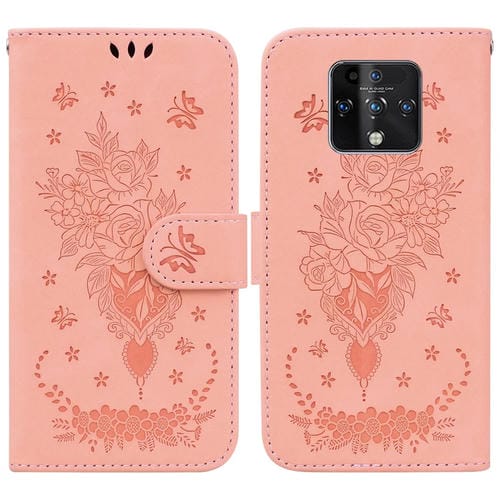Funda de Cuero para Tecno Camon 16 Gran con Relieve de Mariposa (Rosa)