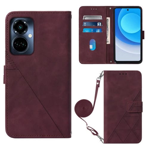 Funda de Cuero para Tecno Camon 19 Pro 5G Crossbody 3D con Tapa En Relieve (Rojo Vino)