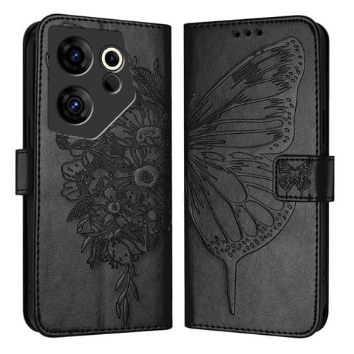 Funda de Cuero para Tecno Camon 20 Premier 5G con Mariposa en Relieve (Negro)