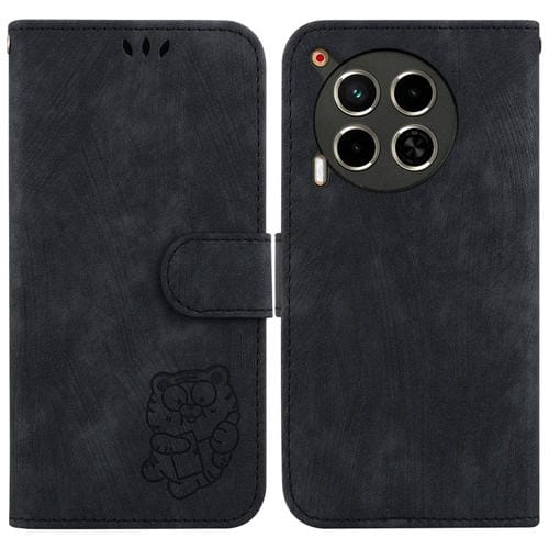 Funda de Cuero para Tecno Camon 30 4G y 5G con Relieve Little Tiger (Negro)