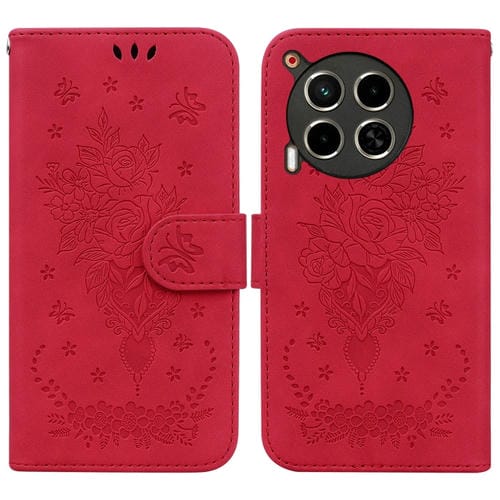 Funda para Tecno Camon 30 4G / 5G Cuero con Relieve Mariposa y Rosa (Rojo)