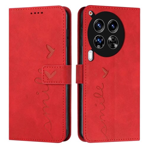 Funda para Tecno Camon 30 Premier Skin Feel Heart de Cuero en Relieve con Cordón Largo (Rojo)