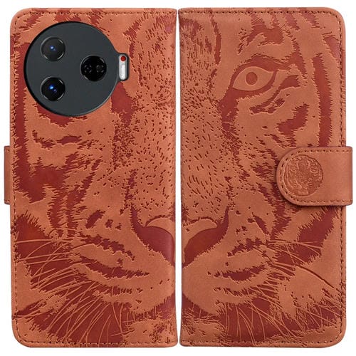 Funda de Cuero con Tapa para Tecno Camon 30 Pro Tiger Embossed Pattern (Marrón)