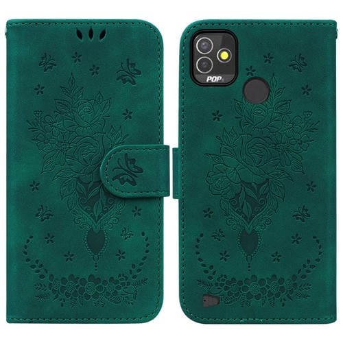 Funda para Tecno Pop 5P Butterfly Rose Foothip en Relieve de Cuero (Verde)