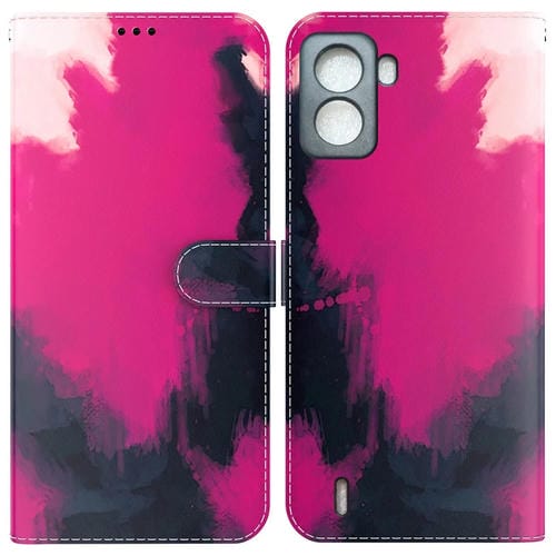 Funda de Cuero para Tecno Pop 6 con Tapa Horizontal y Patrón Acuarela sin Huellas (Baya)