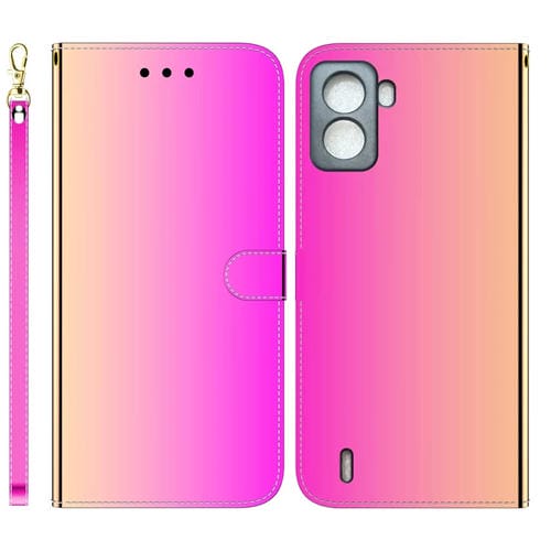 Funda de Cuero para Tecno Pop 6 con Tapa Horizontal y Superficie de Espejo Imitada (Color Degradado)