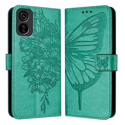 Funda de Cuero para Tecno Pop 6C y Itel A18 con Mariposa en Relieve (Verde)