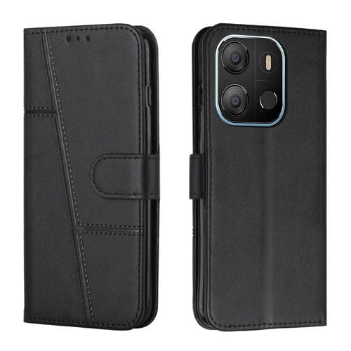 Funda de Cuero para Tecno Pop 7 con Costura y Hebilla (Negro)