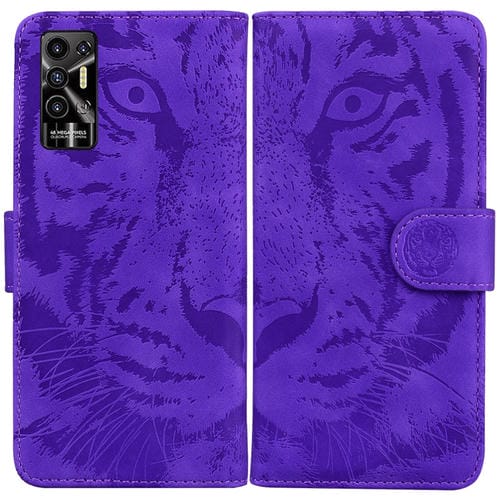 Funda Flip para Tecno Pova 2 con Patrón Tiger en Relieve Horizontal (Púrpura)