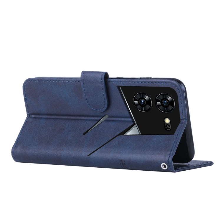 Funda para Tecno Pova 5 Pro de Cuero con Hebilla y Textura de Becerro (Azul)