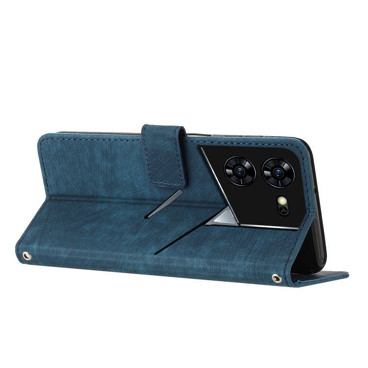 Funda de Cuero para Tecno Pova 5 Pro con Patrón de Rayas y Cordón Largo (Azul)