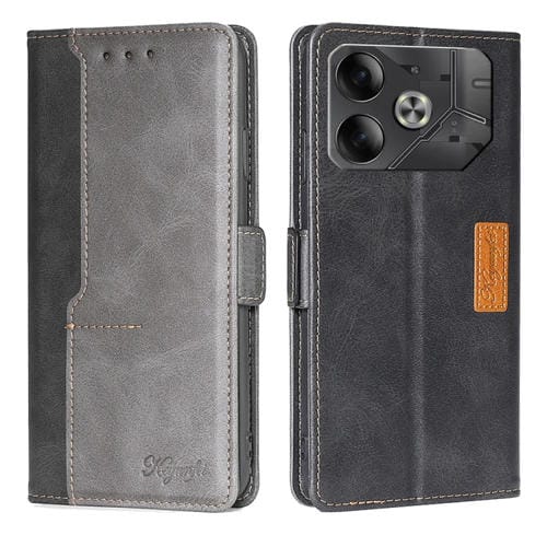 Funda de Cuero para Tecno Pova 6 5G con Hebilla Lateral (Negro + Gris)