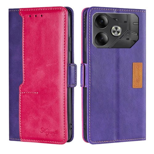 Funda para Tecno Pova 6 5G de Cuero con Hebilla Lateral (Púrpura + Rojo Rosa)